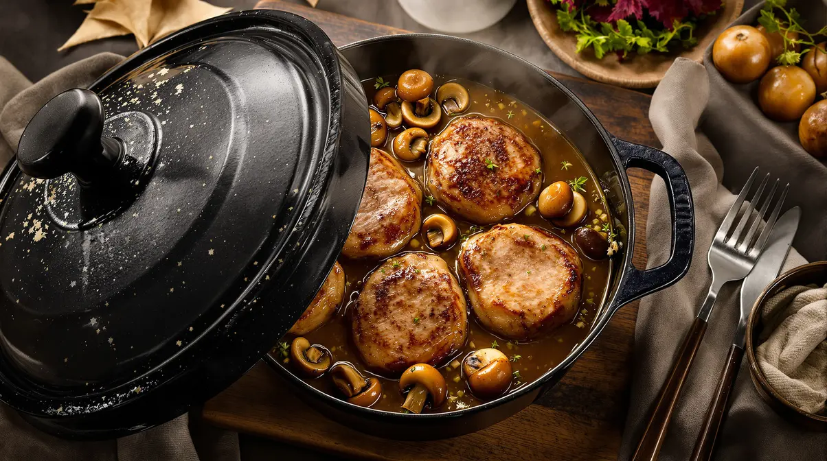 Vous avez envie d’un plat qui sent bon l’automne, qui réchauffe la maison et qui ne vous cloue pas en cuisine pendant des heures ? Ce filet mignon aux champignons et moutarde est exactement ce qu’il vous faut. Une seule cocotte, une sauce crémeuse à tomber et un temps de préparation raisonnable. En 30 minutes, votre repas du dimanche est prêt, même un soir de semaine.